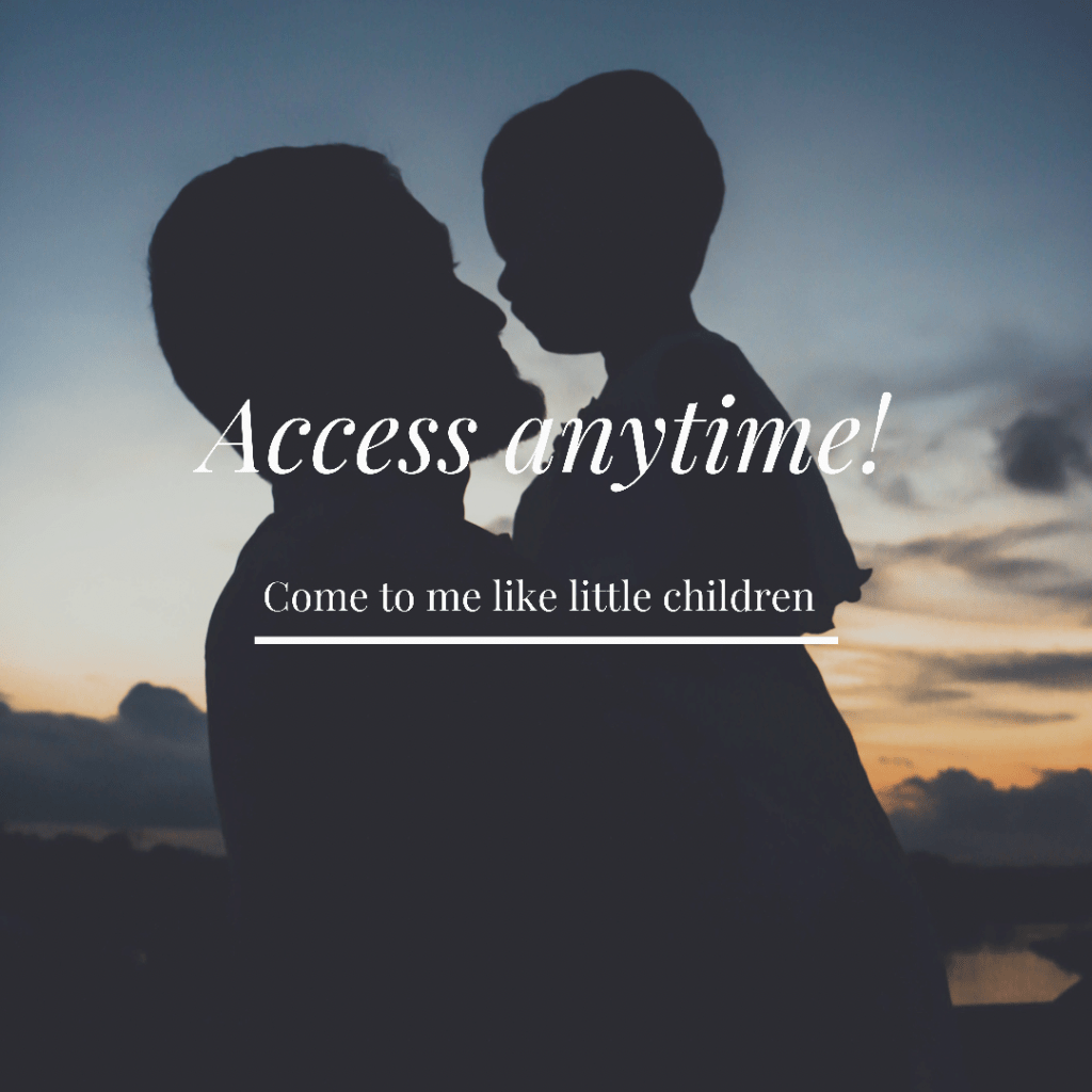 He invites us to come like children and children never worry about what their parent is doing and would enter the most important meeting you could possibly imagine without a care of what the situation is or how formal it is or who it’s with. They just want to see their daddy and that is their only concern in that moment as they burst into the room.